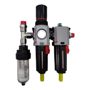 Compressed air filter unit heavy-duty with pressure switch, three filtration stages complete with pressure regulator and inlet pressure gauge. Automatic condensate drain with 5u, prefilter and 0.01u submicron filter with automatic system. Adjustable pressure switch for instrument air, range 0.5-8bar. Aluminum body.